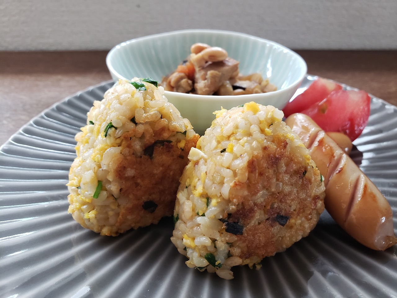 アレンジもしやすいように塩なしのおむすびを作りました。